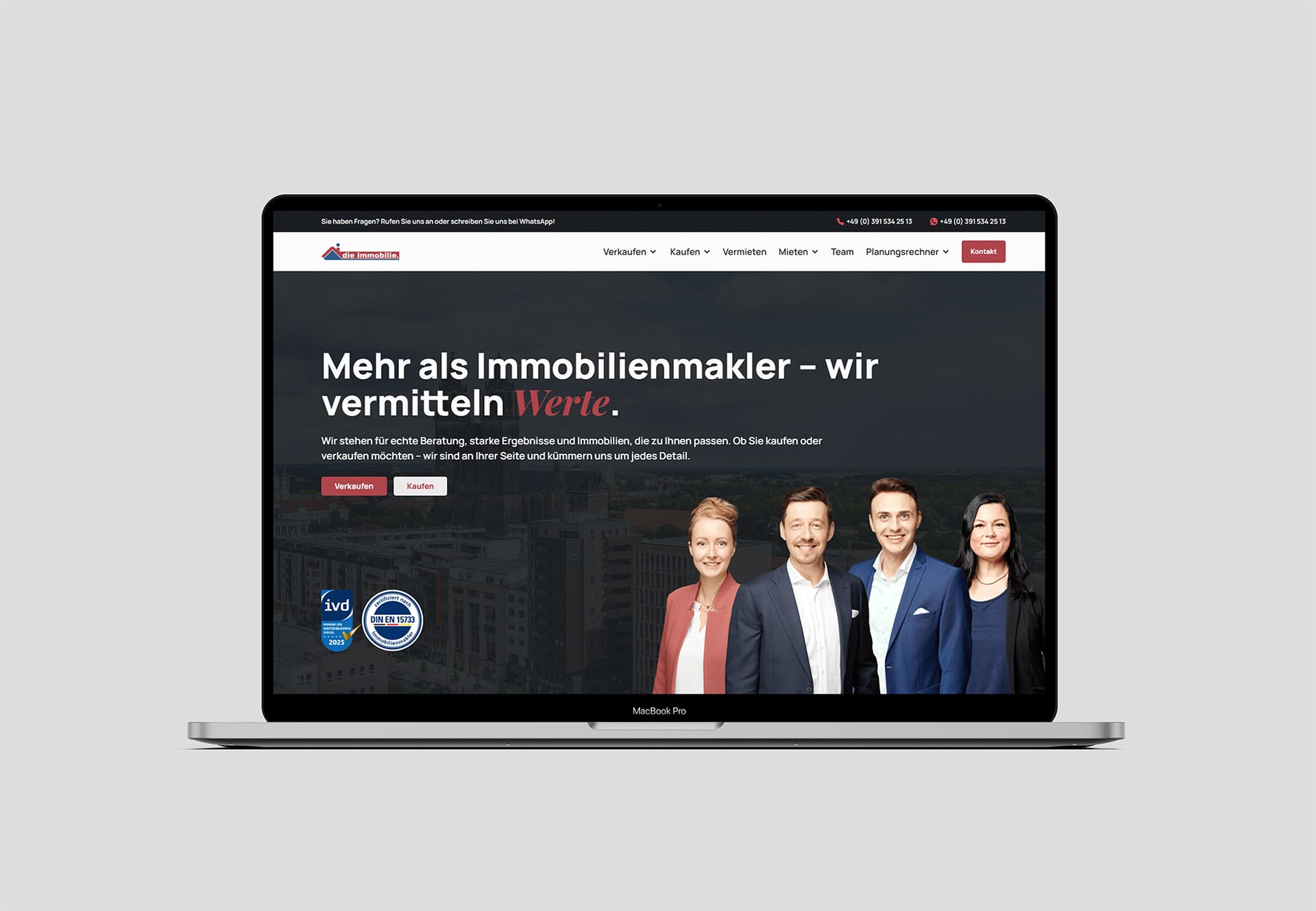 Im Rahmen des Projekts für die Immobilie Magdeburg wurde die Website vollständig neu konzipiert und umgesetzt. Ziel war es, den professionellen Anspruch des Unternehmens digital erlebbar zu machen. Entstanden ist ein modernes, ansprechendes Design mit klarer Navigation und intuitiver Nutzerführung, das Interessenten schnell zu den relevanten Informationen führt.